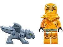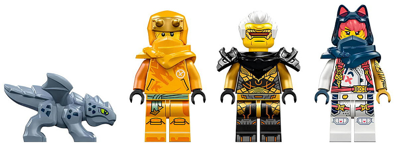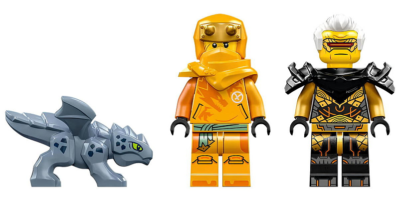 В набор входят 3 минифигурки: ученики-ниндзя Арин и Сора, охотник на драконов Раптон и модель дракона Baby Riyu. Арин вооружен катаной и крюком-кошкой, а у Соры 2 катаны. Вместе они должны сразиться с Раптоном, который вооружен мечом Imperium и летает на планере с 2 шипованными шутерами. Этот набор вдохновит детей на бесчисленные часы ролевых игр со своими героями.
