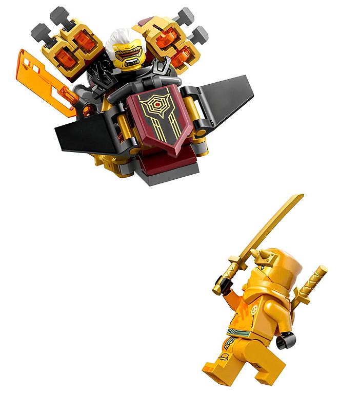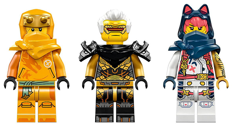 3 минифигурки. В этот набор входит минифигурка Арина, вооруженного катаной и крюком, Сора с 2 катанами и Раптон с мечом Империума на планере, вооруженном 2 шипометами.