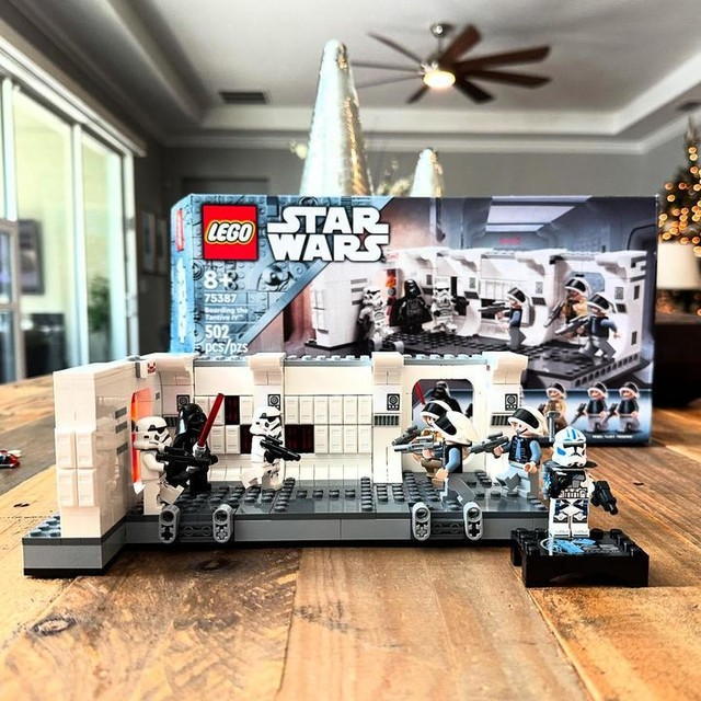 Воссоздайте Дарта Вейдера и его штурмовиков, садящихся на борт Tantive IV в фильме «Звездные войны : Новая надежда», с этим сборным игрушечным игровым набором (75387) для детей от 8 лет и старше. Он включает в себя детальное воссоздание коридора внутри Tantive IV, где штурмовики Дарта Вейдера сражались с десантниками повстанческого флота капитана Антиллеса, с рычагами, чтобы «взрывом» открыть входную дверь и опрокинуть персонажей во время игры в битву. Соединители позволяют сборщикам добавлять еще один набор 75387 (продается отдельно), чтобы расширить коридор.