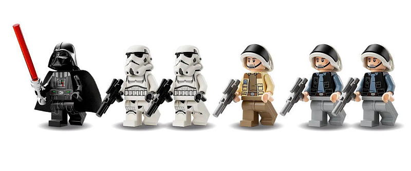 7 минифигурок LEGO® Star Wars ™ – Дарт Вейдер, 2 штурмовика, 2 солдата флота повстанцев и капитан Антиллес, а также минифигурка ARC Trooper Fives в честь 25-летия LEGO Star Wars с демонстрационной подставкой