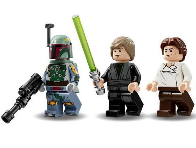 6 минифигурок LEGO Star Wars — Люк Скайуокер, Хан Соло, Чубакка, Лэндо Калриссиан и Боба Фетт с аксессуарами, а также минифигурка Ниен Нунба, посвященная 25-летию LEGO Star Wars.