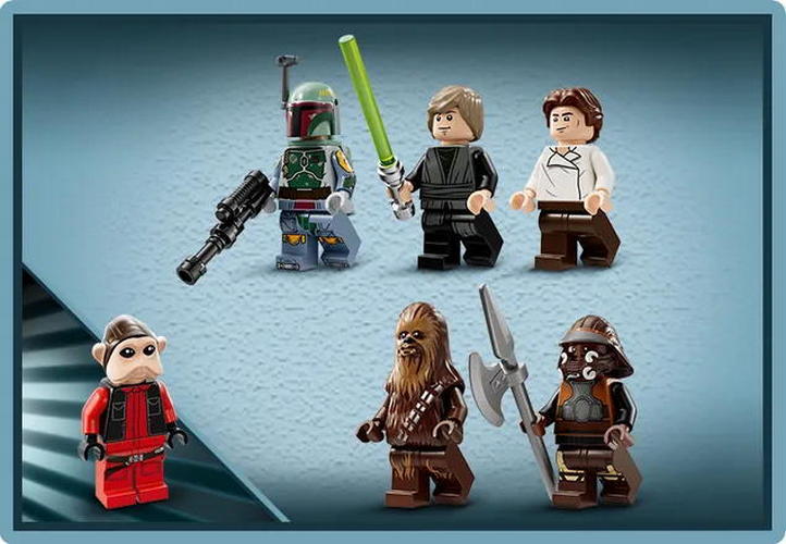 Включает шесть минифигурок LEGO, в том числе Люка Скайуокера, Хана Соло, Чубакку, Лэндо Калриссиана и Бобу Фетта, а также подробные аксессуары. Кроме того, в набор входит специальная минифигурка Ниен Нунба, посвященная 25-летию LEGO Star Wars.