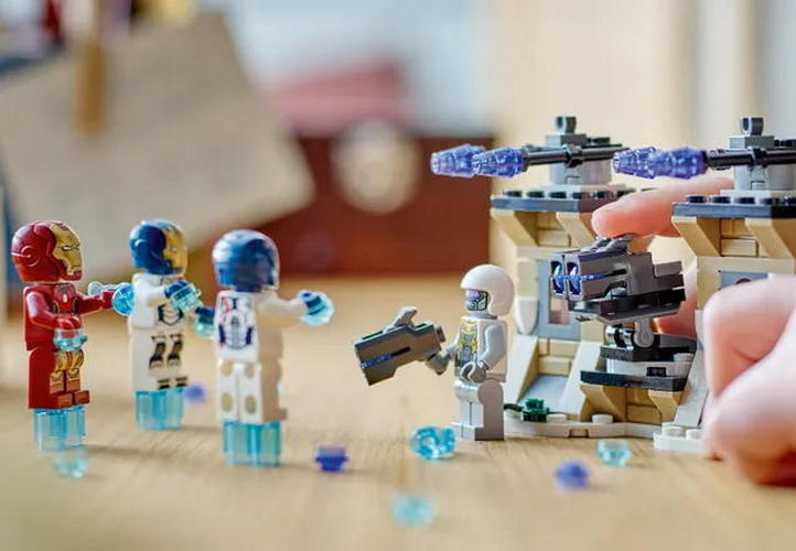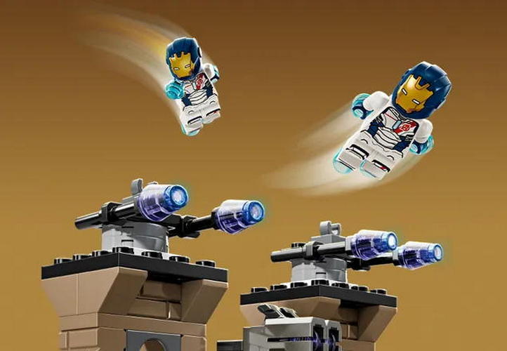 Аутентичные детали — минифигурка Железного человека имеет открывающийся забрало и держит в руках бластер, у солдата Гидры есть шутер, а специальные кубики создают впечатление, что минифигурки летают.
