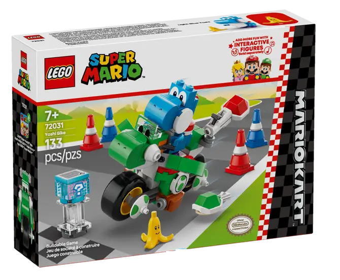 Идея подарка Nintendo® для детей – гоняйте и дрифтуйте на сборной модели мотоцикла Йоши с этим приключенческим набором LEGO® Super Mario™: Mario Kart™