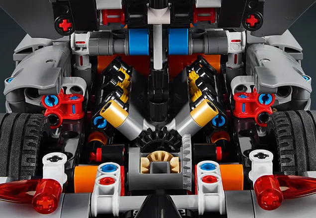 Соберите особенности этого игрушечного гиперкара. Строители изучают множество инженерных концепций, собирая шарнирный двигатель V8 и дифференциал, а затем проверяют рулевое управление.