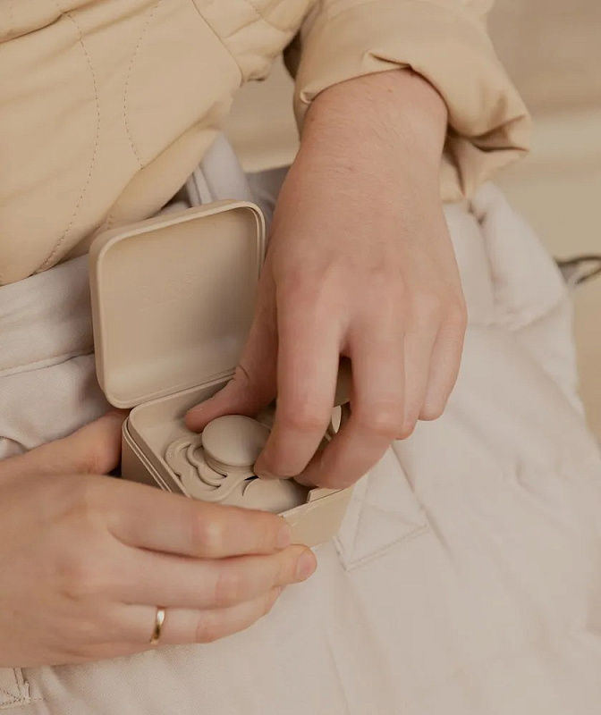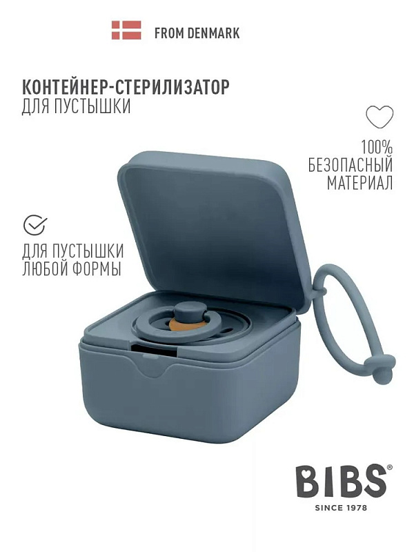 Аксессуар стильно смотрится на сумке или коляске. Контейнер поставляется со специальной съёмной вставкой, с помощью которой можно закрепить внутри одну пустышку BIBS любой формы. Без вставки контейнер вместит уже три пустышки BIBS или одну пустышку с держателем.