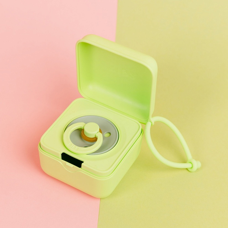 Аксессуар стильно смотрится на сумке или коляске. Контейнер поставляется со специальной съёмной вставкой, с помощью которой можно закрепить внутри одну пустышку BIBS любой формы. Без вставки контейнер вместит уже три пустышки BIBS или одну пустышку с держателем.