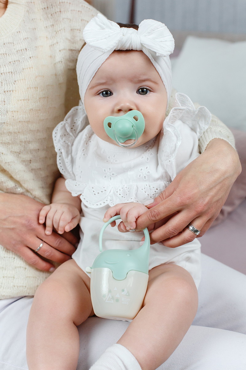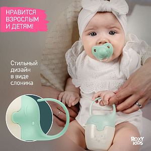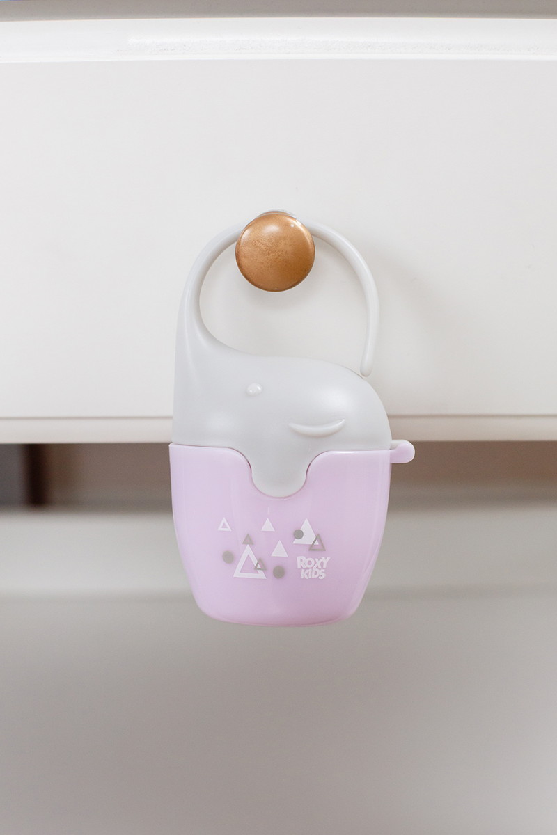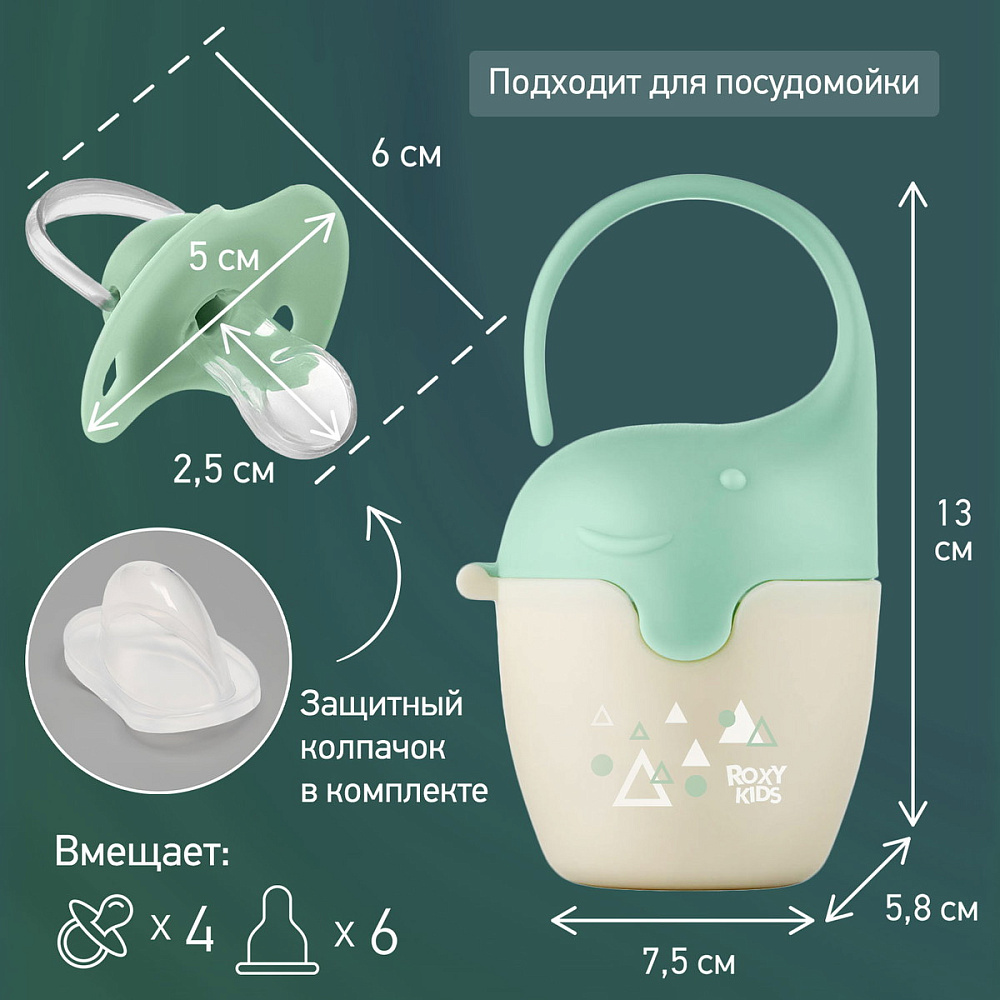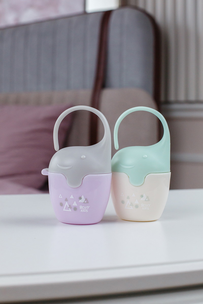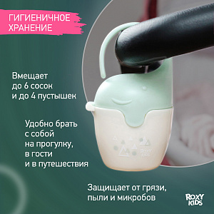 Контейнер для пустышек в виде слоненка от ROXY-KIDS – практичное решение для хранения сосок и пустышек вашего малыша. Он вмещает до 6 сосок или 4 пустышек, обеспечивая удобное и компактное хранение. Крышка плотно закрывается, чтобы сохранить соски и пустышки в чистоте, а широкая гибкая ручка позволяет закрепить контейнер на кроватке, коляске или сумке.