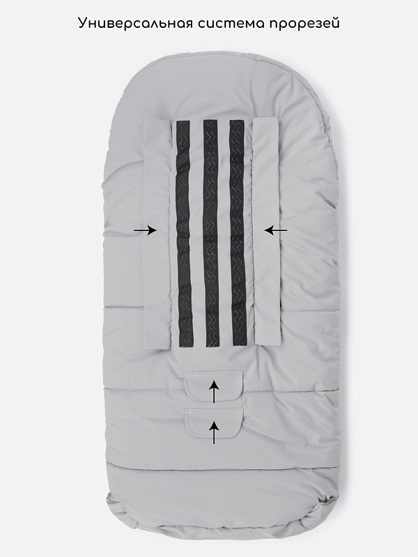 Универсальные прорези для ремней безопасности гарантируют надежную фиксацию в коляске или автокресле.