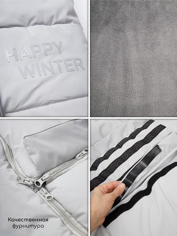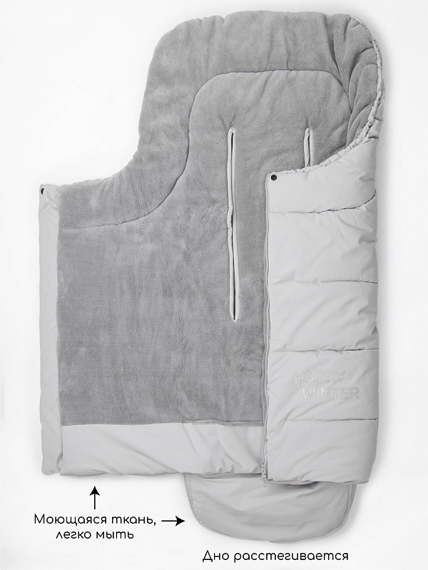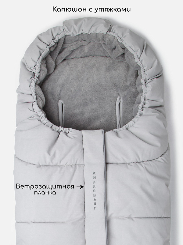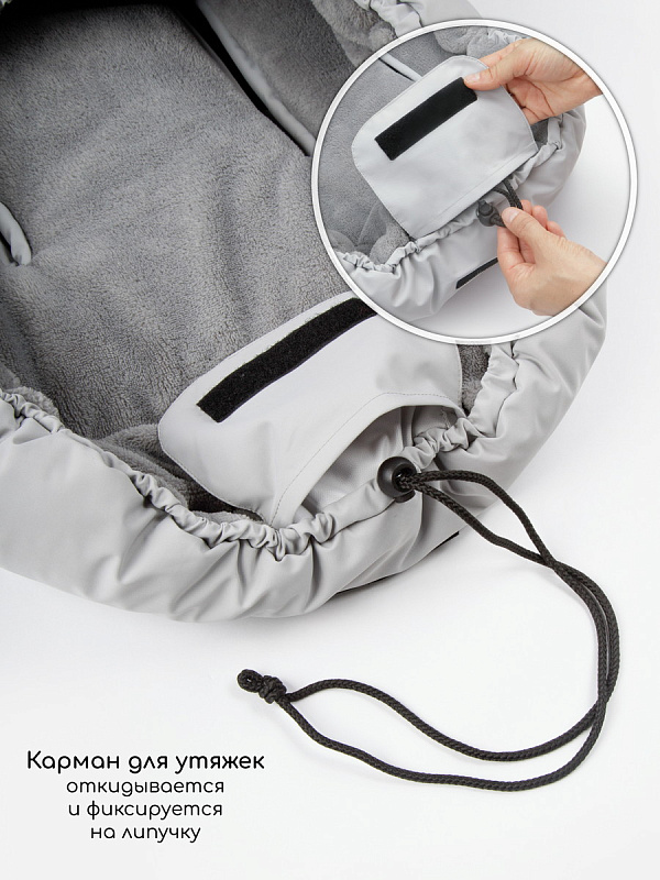 Для максимальной защиты от стужи капюшон легко утягивается, превращая конверт в уютное гнездышко.