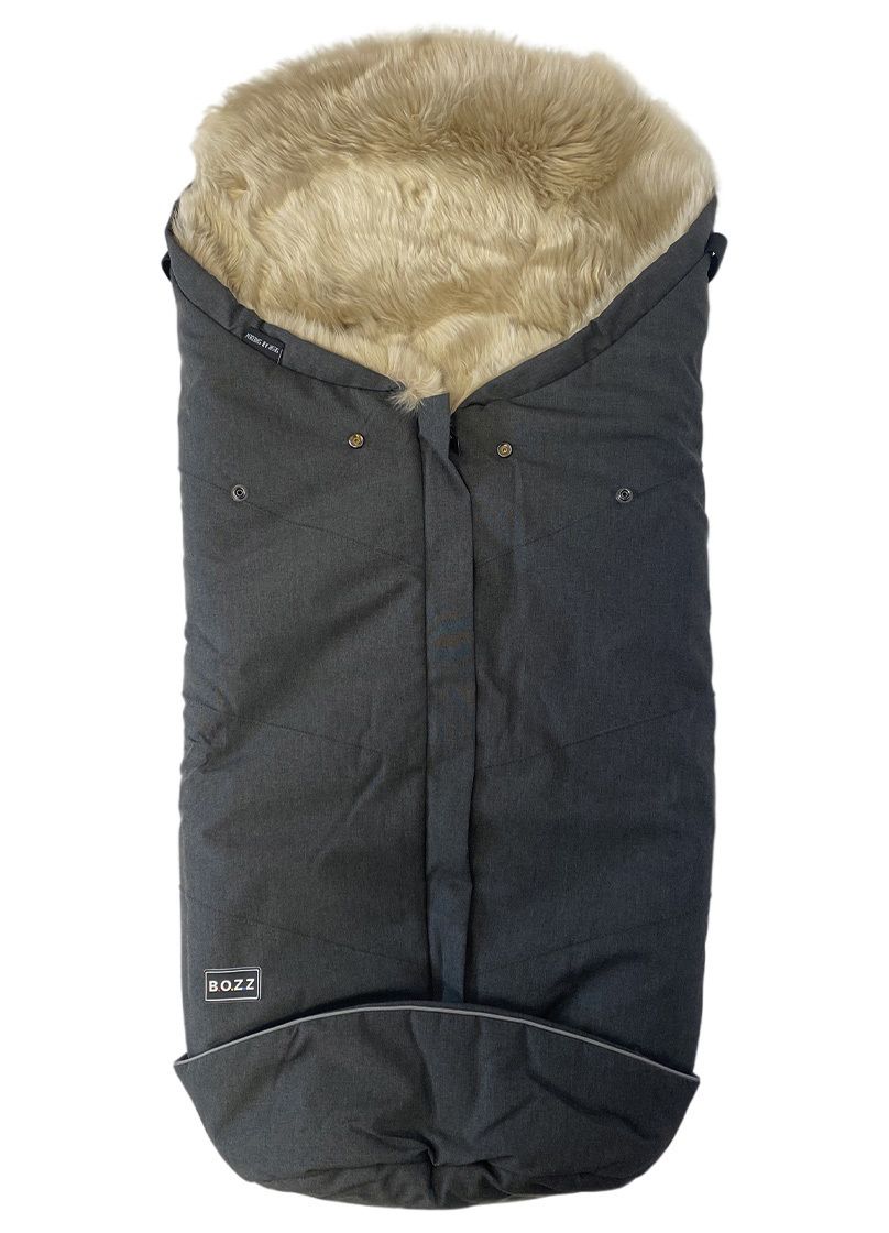 Конверт Bozz из овчины с длинным ворсом черный меланж/лён