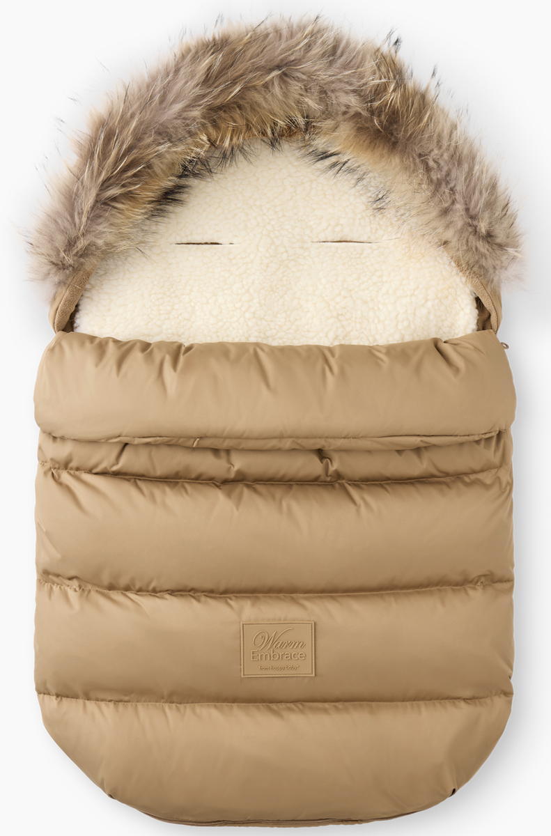 Съёмный меховой вкладыш — регулирует уровень утепления: добавьте его в мороз или уберите в более тёплую погоду. Вкладыш универсален и подходит для использования в коляске, санях и автокресле.
