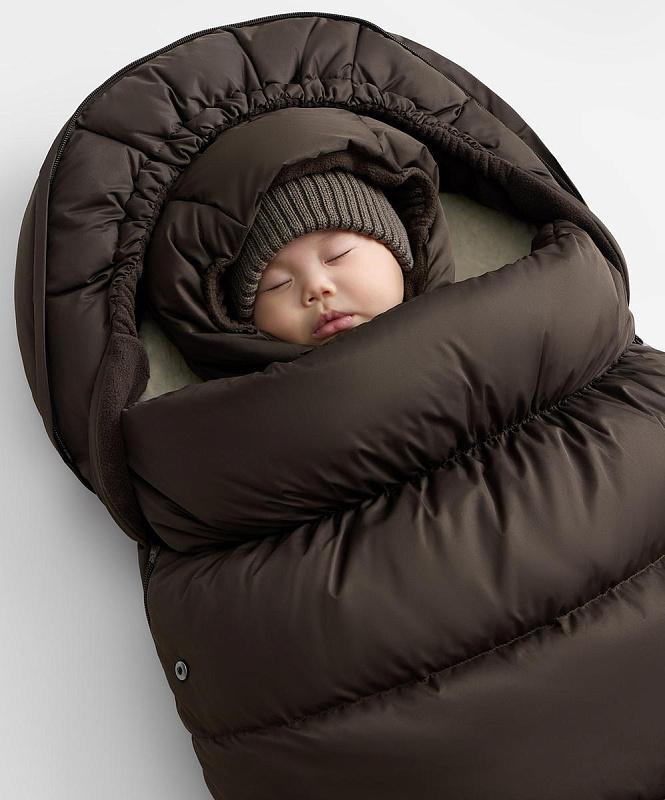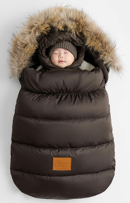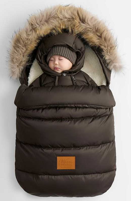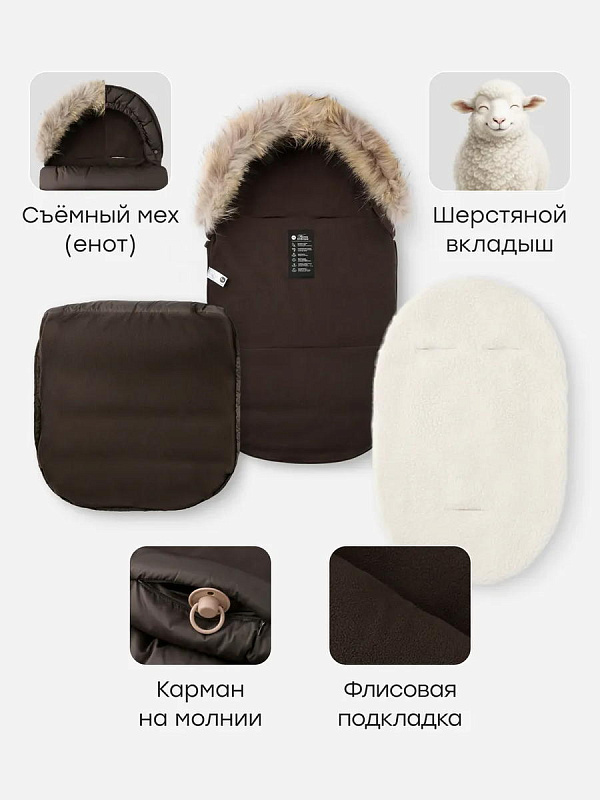 Съёмный меховой вкладыш — регулирует уровень утепления: добавьте его в мороз или уберите в более тёплую погоду. Вкладыш универсален и подходит для использования в коляске, санях и автокресле.