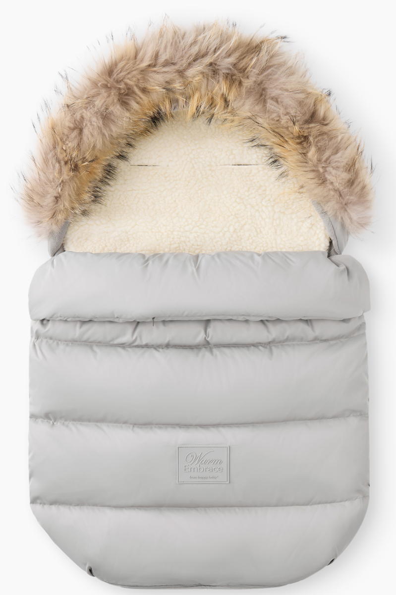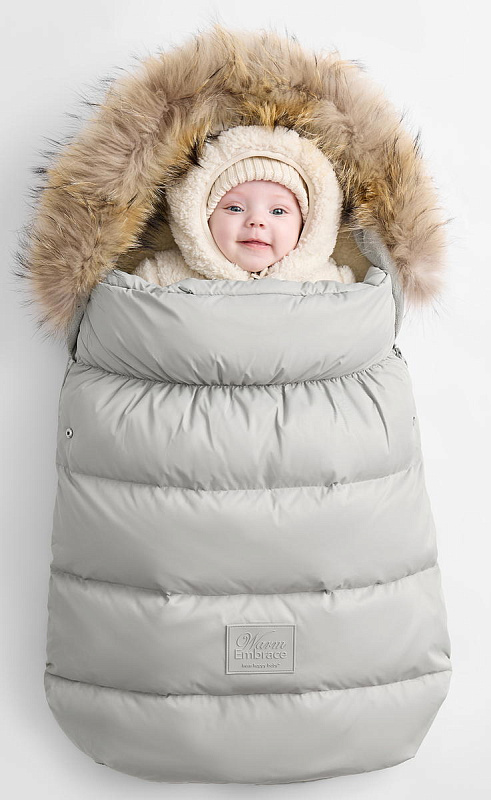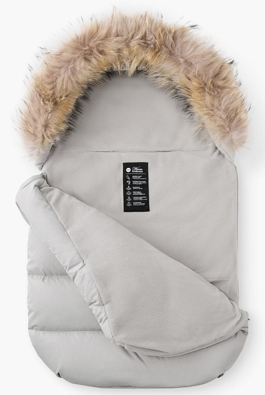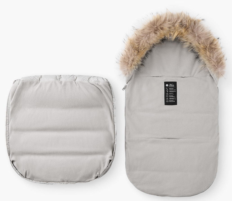 Съёмный меховой вкладыш — регулирует уровень утепления: добавьте его в мороз или уберите в более тёплую погоду. Вкладыш универсален и подходит для использования в коляске, санях и автокресле.