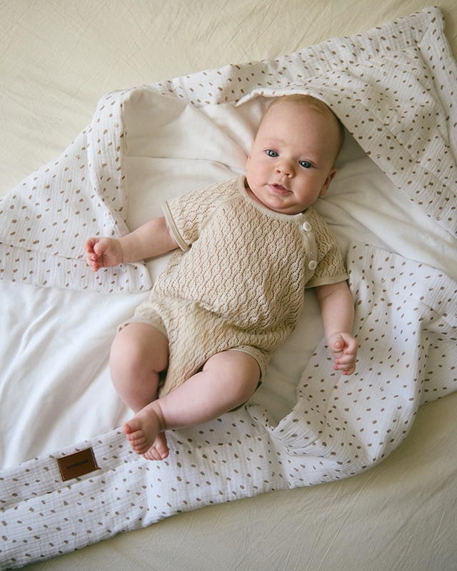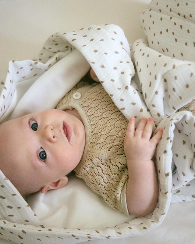 Конверт из муслина с первых секунд окружает малыша нежными прикосновениями и атмосферой спокойствия.