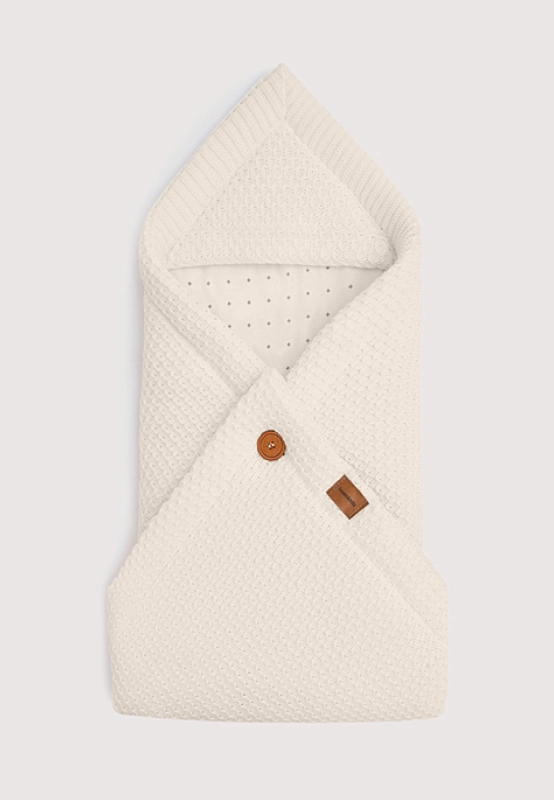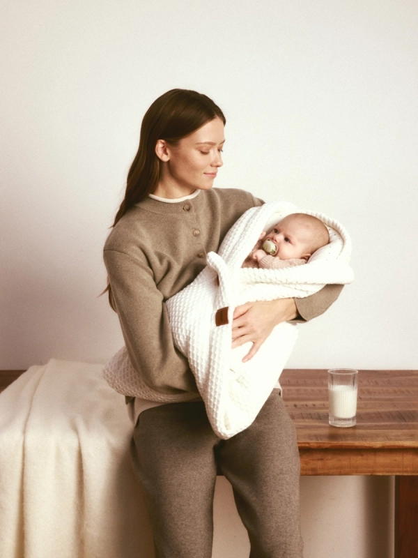 Петельки мягкой гипоаллергенной пряжи дружно обнимают малыша, дополняя хлопковую подкладку конверта. Нежные материалы обеспечивают приятную тактильность, не натирают и не травмируют чувствительную кожу новорожденного.