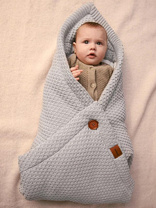 Петельки мягкой гипоаллергенной пряжи дружно обнимают малыша, дополняя хлопковую подкладку конверта. Нежные материалы обеспечивают приятную тактильность, не натирают и не травмируют чувствительную кожу новорожденного.