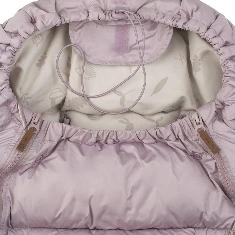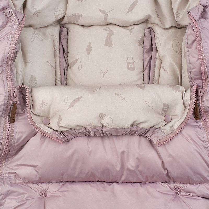 Внутри конверта в зоне ног имеется защитная ткань с водоотталкивающей пропиткой. Это позволяет малышу находиться внутри конверта в обуви. Ультрасовременный гипоаллергенный утеплитель максимально точно воспроизводит структуру натурального пуха и удерживает тепло до -25 °C. Утеплитель обеспечивает надежную защиту от холода, не боится влаги, отлично сохраняет свои свойства после стирок, не деформируется.