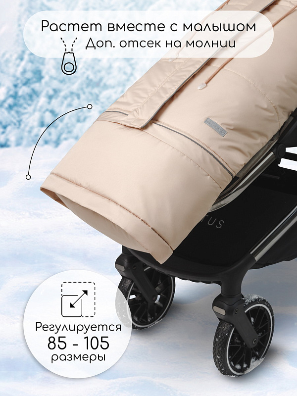 Регулировка длины конверта от 85 до 105 см позволяет адаптировать его под рост и размер вашего малыша. Материал мягкий, дышащий, сохраняет тепло без парникового эффекта. Температурный режим до -30°C. Обеспечивая максимальный комфорт на протяжении длительного времени. У конверта имеются прорези для 5-ти точечных ремней безопасности. Верх конверта утягивается и превращается в капюшон, который плотно прилегает к голове ребенка и спасает его от ветра, а светоотражающие элементы повышают видимость в условиях недостаточной освещенности. В зоне ног у конверта расположена защитная ткань, поэтому малыша можно посадить в конверт прямо в обуви, не боясь испачкать подкладку. Низ конверта сделан из непромокаемой ткани, которую легко можно снять, протереть или постирать отдельно от самого изделия. Конверт детский отлично подойдет, как на выписку, так и для ежедневных прогулок. Детский конверт-трансформер незаменимая вещь для вашего ребенка. Универсальные цвета подойдут, как для мальчика, так и для девочки.