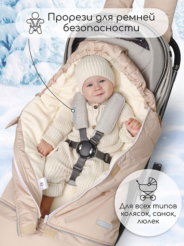 Зимний утепленный конверт-трансформер Amarobaby представляет собой идеальное решение для комфортных и безопасных прогулок в любую погоду с детьми до 4 лет. Конверт состоит из трех слоев: водонепроницаемая верхняя ткань защищает от дождя и снега, плотный утеплитель(300г/м2) и подкладка из флисовой ткани обеспечивают мягкость и тепло. Многослойность обеспечивает надежную защиту от холода, ветра и влаги.