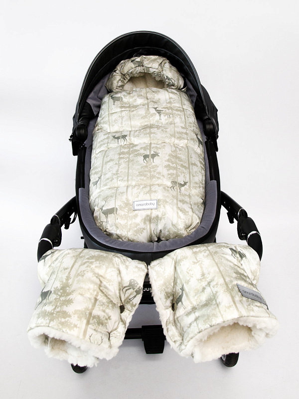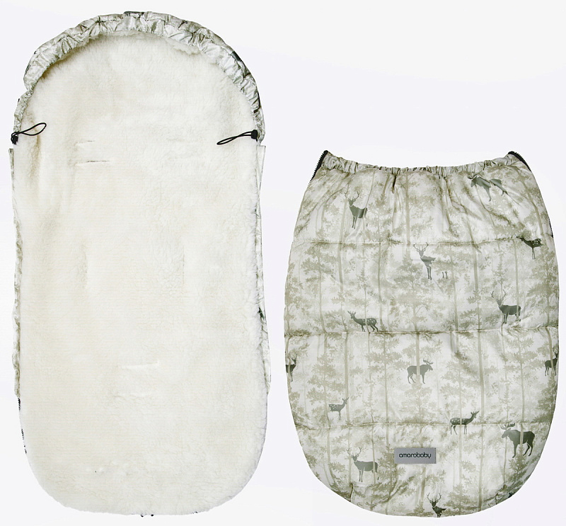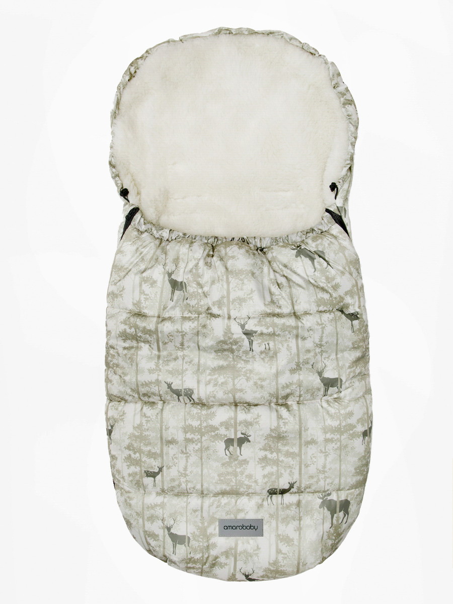 Конверт меховой AmaroBaby Snowy Baby 105 см Олени бежевый