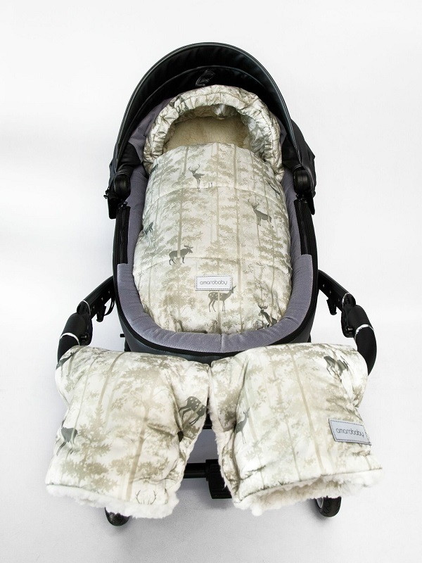 Конверт меховой AmaroBaby Snowy Baby 85 см олени бежевый