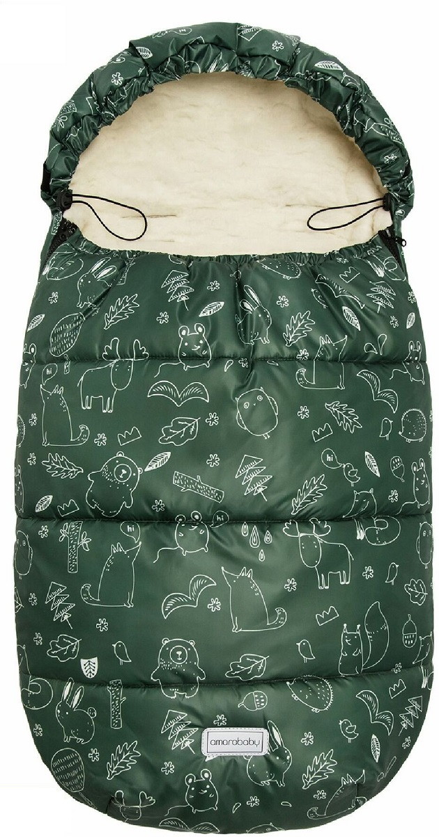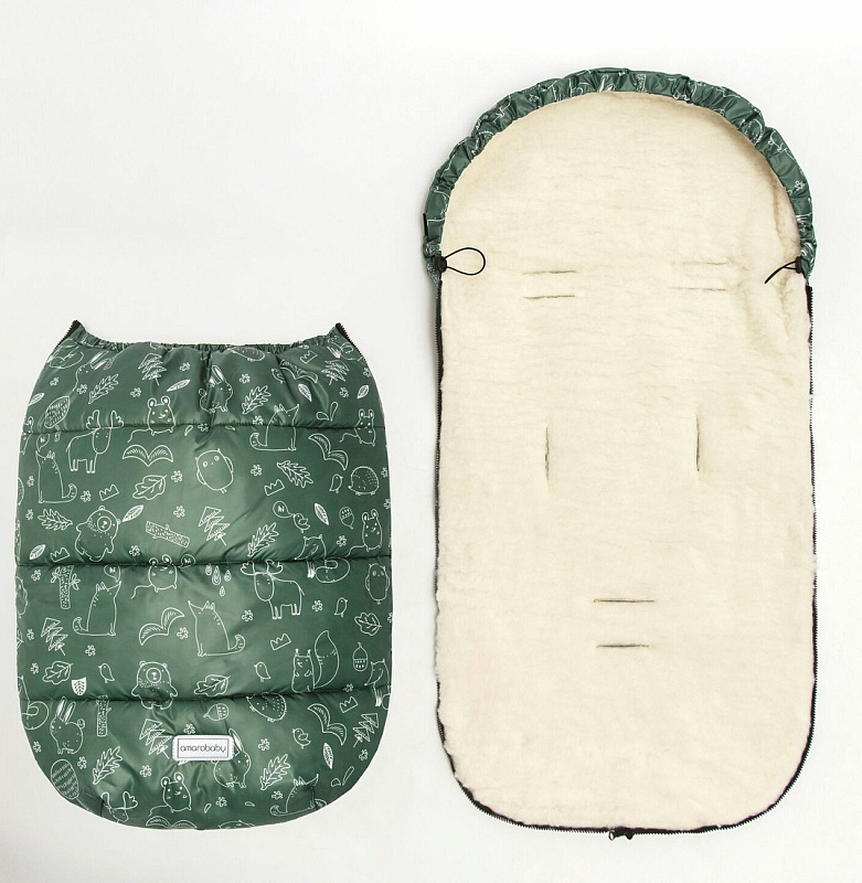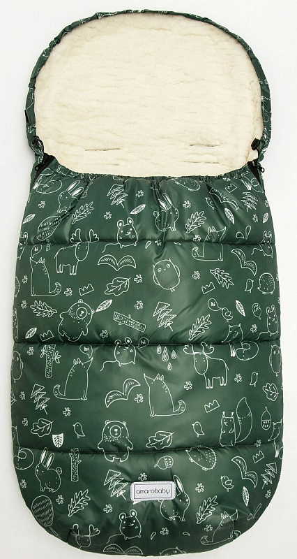 Конверт меховой AmaroBaby Snowy Travel 105 см зверята хаки