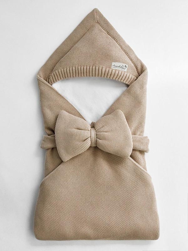 Конверт в комплекте с бантом будет нарядным вариантом для выписки из роддома.