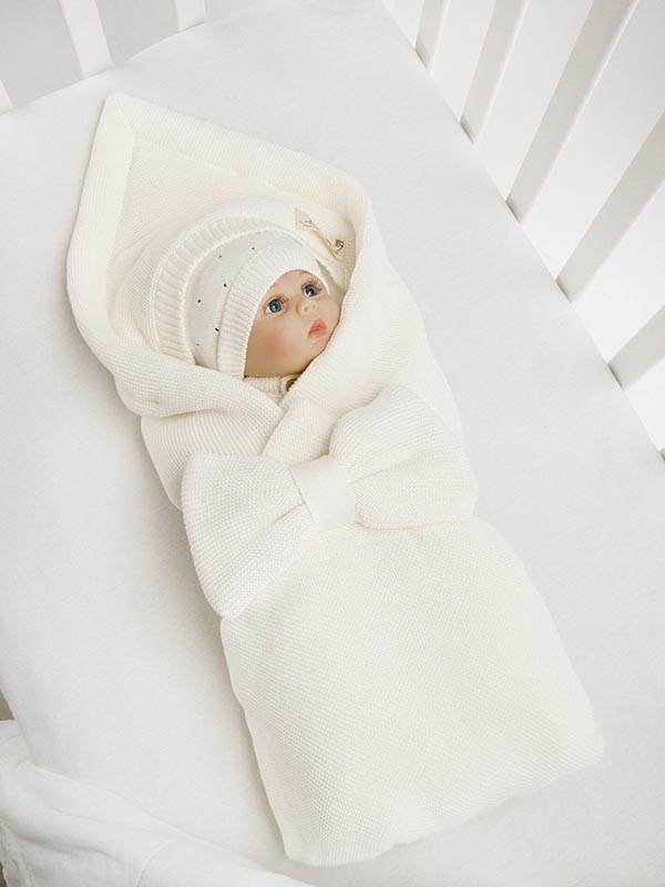 Конверт в комплекте с бантом будет нарядным вариантом для выписки из роддома.