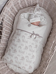 Изысканный конверт на выписку — торжественный «первый наряд» для новорождённого, сочетающий классические традиции и утончённую эстетику. Модель создана для тех, кто ценит благородную сдержанность и хочет запечатлеть момент появления малыша в особенной атмосфере достоинства и тепла.