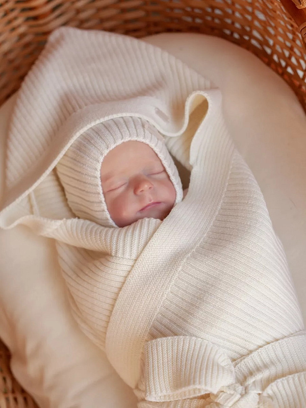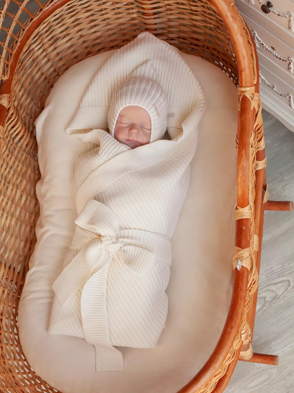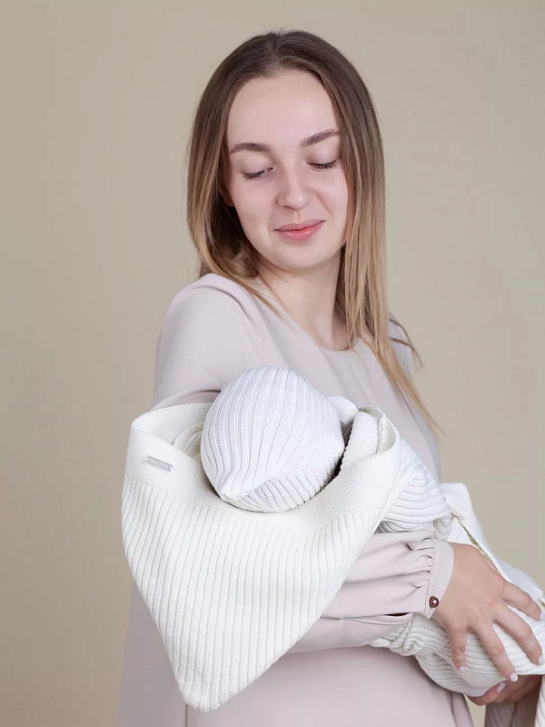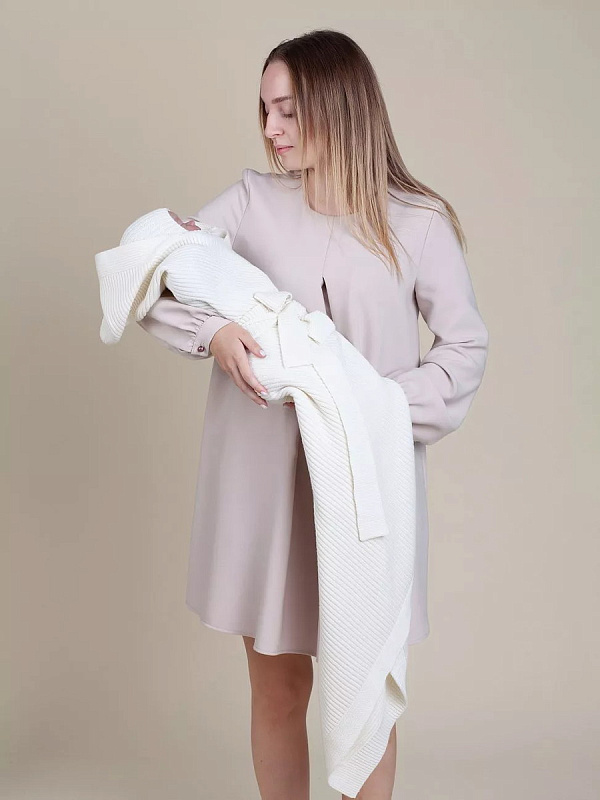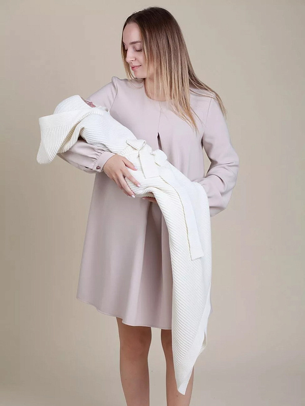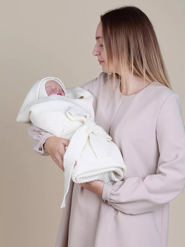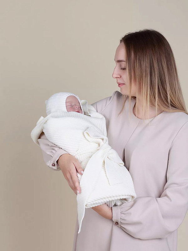 Конверт на выписку НаследникЪ Выжанова плед с капюшоном и поясом 95х95 см НВ2000 экрю