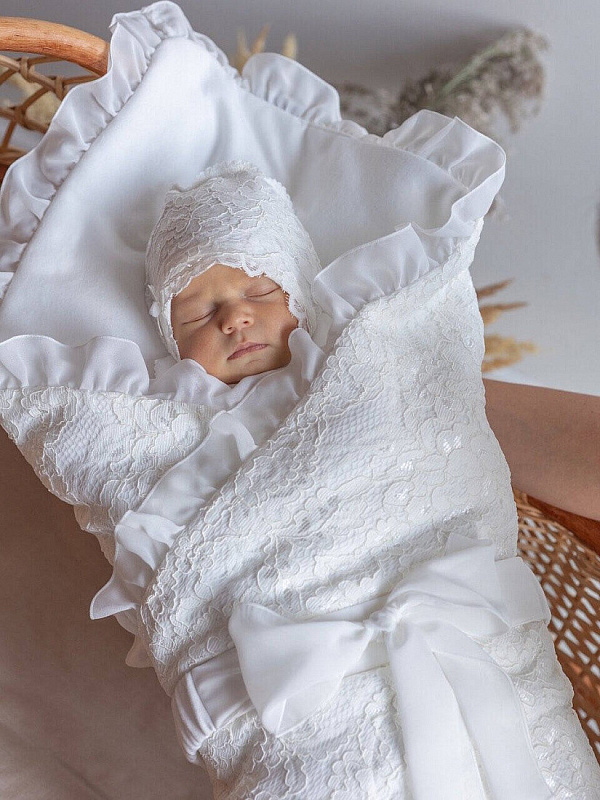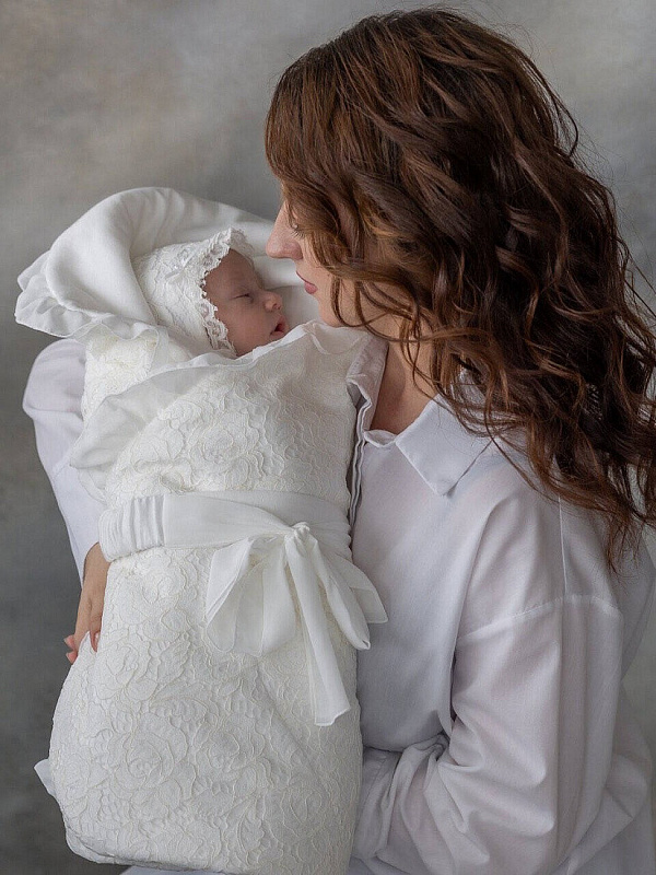 Конверт на выписку НаследникЪ Выжанова плед с поясом 90х90 см 01033 ЧЗ экрю