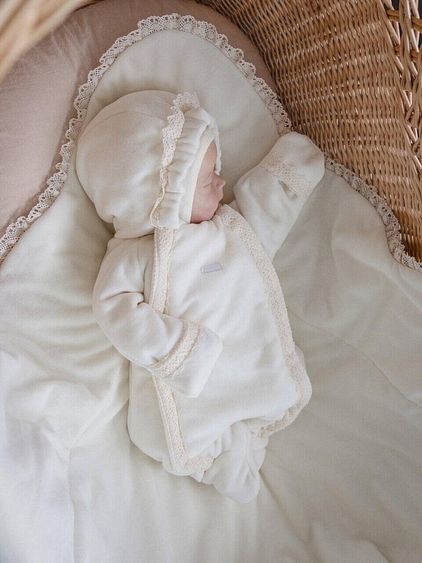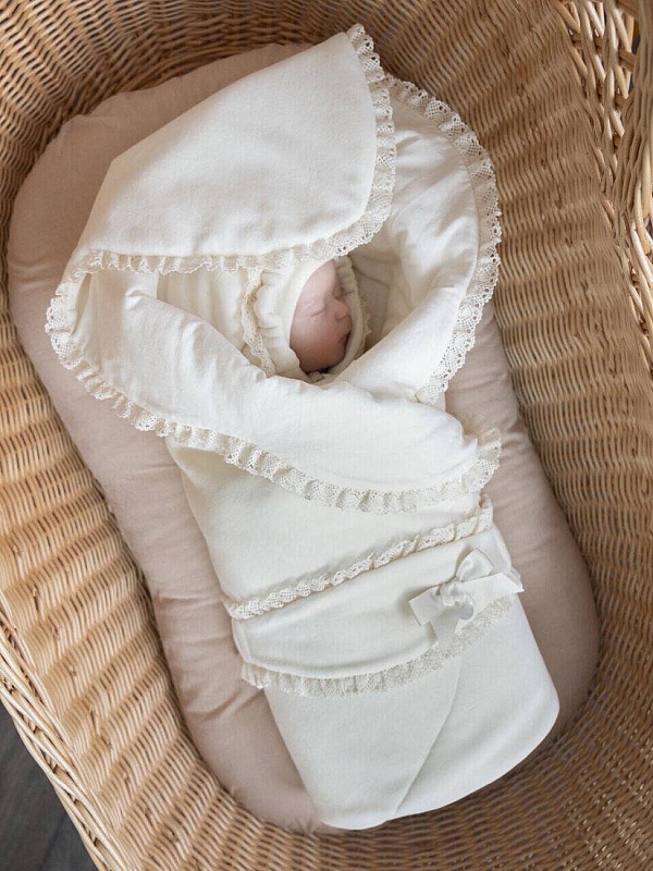 Велюр — это мягкая, плотная, приятная на ощупь, износостойкая ткань. Велюр имеет ворсовую бархатистую поверхность с лицевой стороны, создается из хлопковых нитей. Велюровые пледы обладают способностью сохранять тепло, создавая для младенца комфортные условия вне зависимости от температуры воздуха. Они поддерживают оптимальный уровень тепла и влажности, помогая регулировать температуру тела ребенка. Велюровый плед для новорожденных – это не просто предмет одежды, но и незаменимый аксессуар для малыша. Он подарит уют и радость вашему ребенку. Отделка в комплекте выполнена из натурального хлопкового кружева. В комплект входит: плед, пояс - резинка, фирменная упаковка.