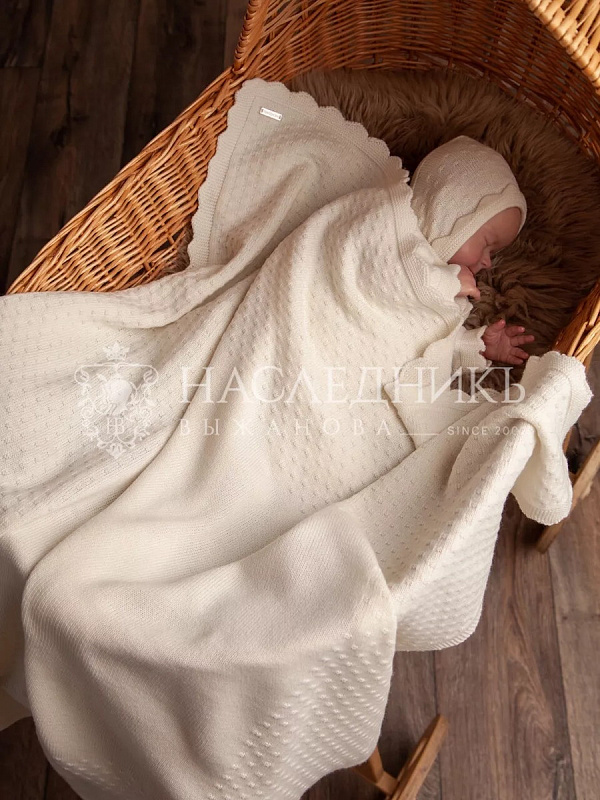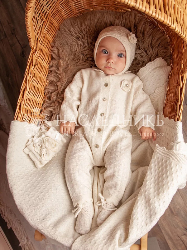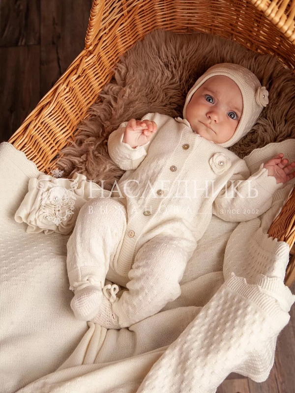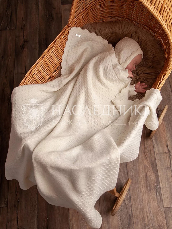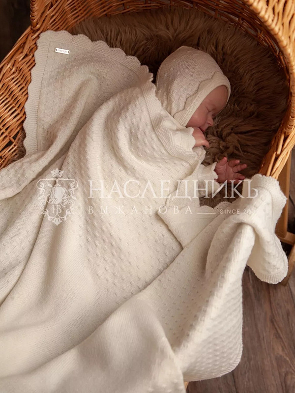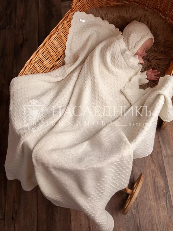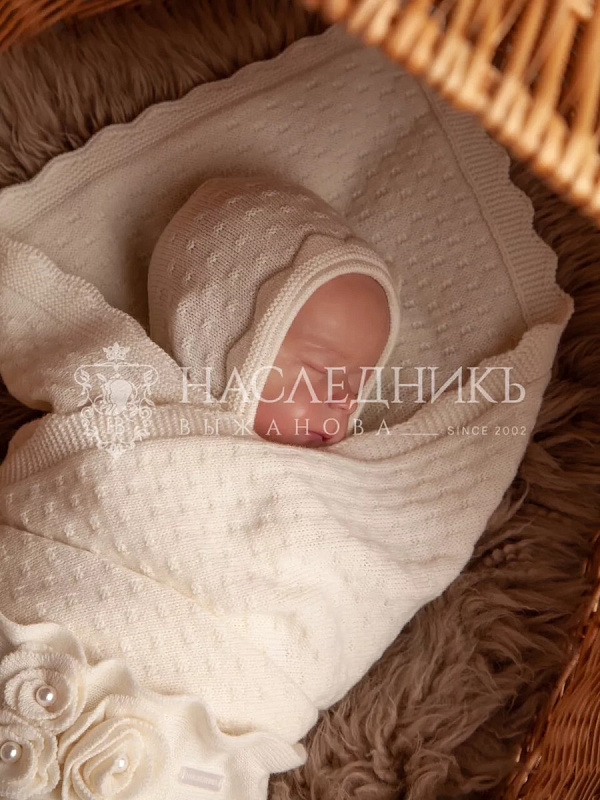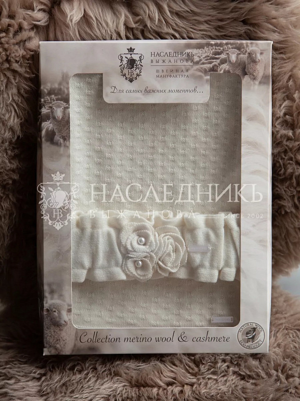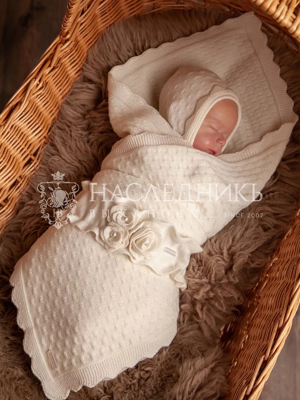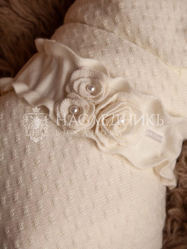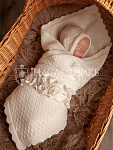 Конверт на выписку НаследникЪ Выжанова Плед с поясом с розой НВ2009 экрю