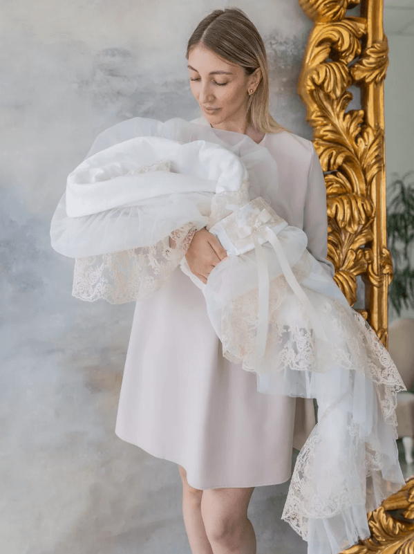 Конверт на выписку НаследникЪ Выжанова Рококо плед утепленный с поясом 95х95 см. 01104-02002-054 ЧЗ экрю