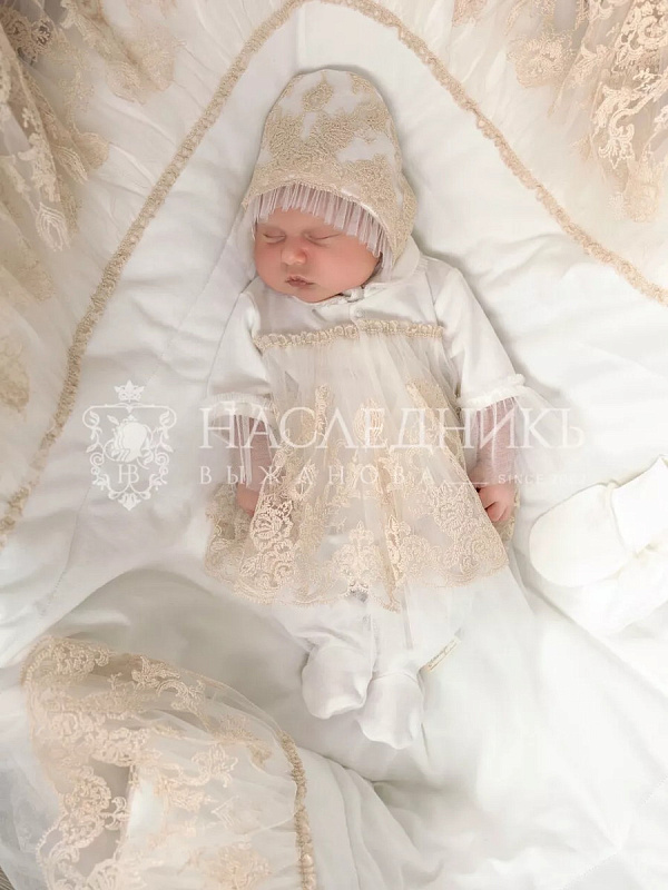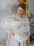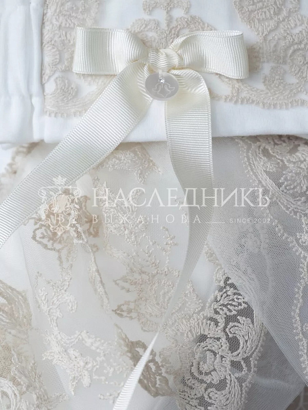 Конверт на выписку НаследникЪ Выжанова Рококо плед утепленный с поясом 95х95 см. экрю