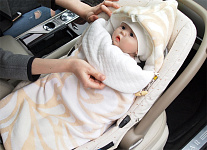 - В аксессуаре предусмотрены специальные прорези для ремешков автокресла. С их помощью вы сможете быстро и надежно пристегнуть ребенка ремнями безопасности, не вынимая его из конверта.