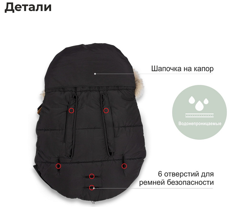 Этот конверт разработан таким образом, чтобы обеспечить максимальное тепло и защиту, благодаря толстой утепленной подкладке, которая защищает от ветра и снега.