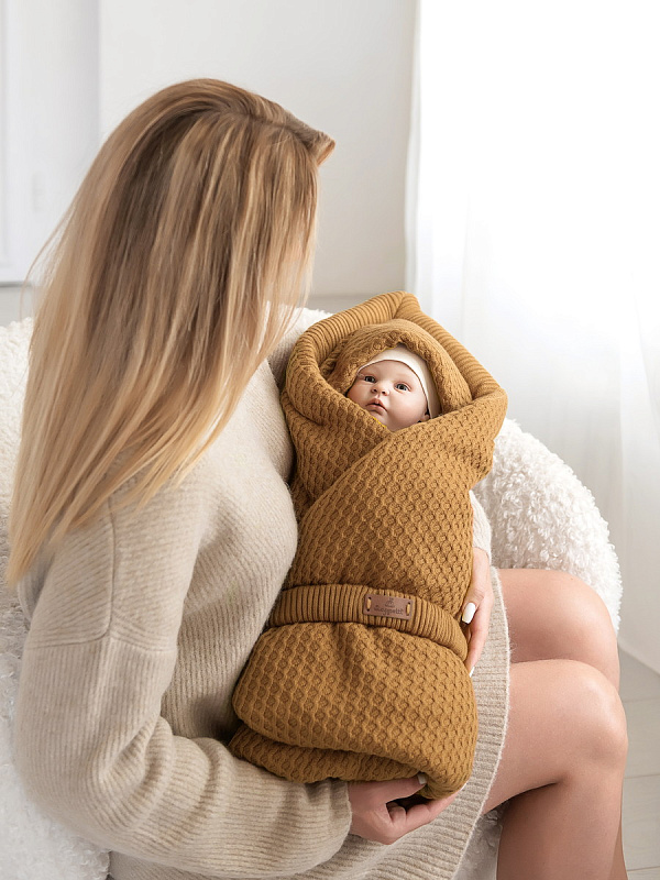 Конверт вязаный утепленный Lappetti Хьюге горчичный
