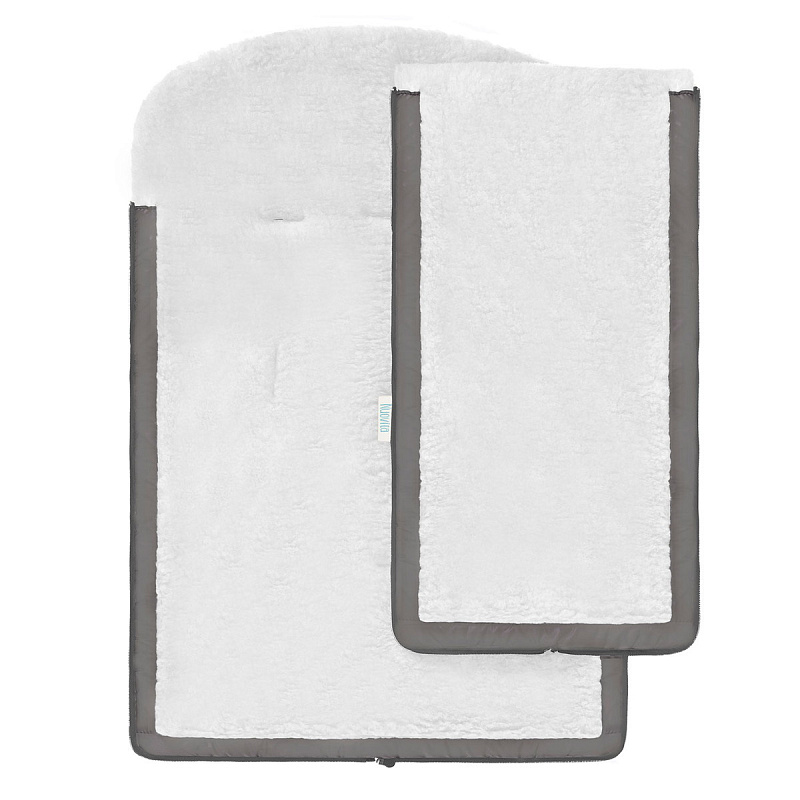 Основа конверта — смесовая овечья шерсть, которая имеет густой и теплый ворс высотой 12 мм. Благодаря природным качествам шерсти внутри конверта обеспечивается оптимальная терморегуляция. Слой синтепона создает дополнительную мягкую прослойку, не утяжеляя изделие (вес конверта всего 0,65кг).
