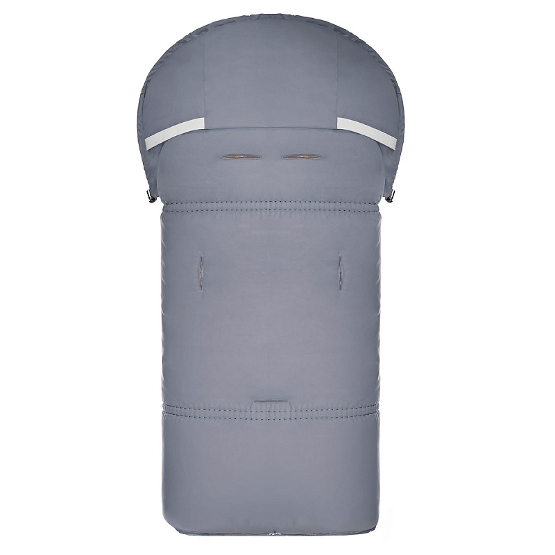 Шнуры-утяжки, выполненные в тон материала, регулируют верх конверта, превращая его в капюшон.