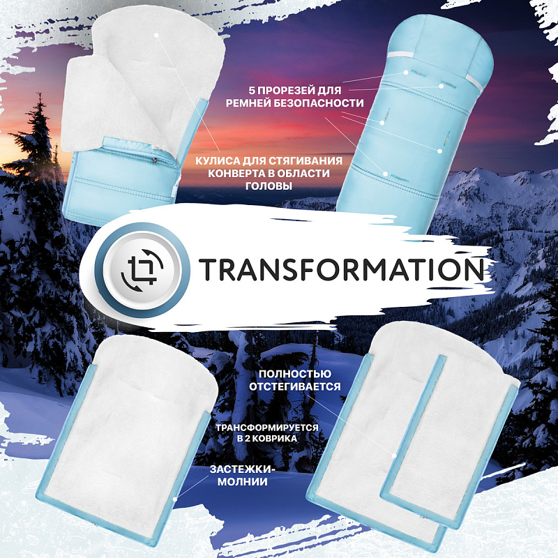 - Примечание: отверстия на спине для ремней безопасности. Крепление для прогулочной коляски, чтобы конверт не сползал. Отворот фиксируется пластиковыми зажимами. Передняя часть отстегивается, можно использовать, как две подстилки.