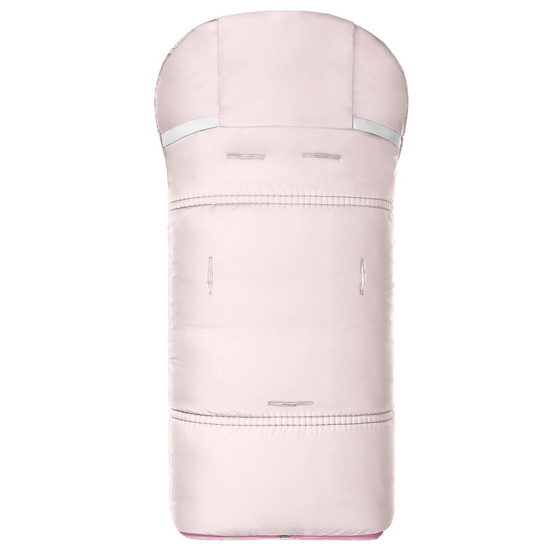 Шнуры-утяжки, выполненные в тон материала, регулируют верх конверта, превращая его в капюшон.