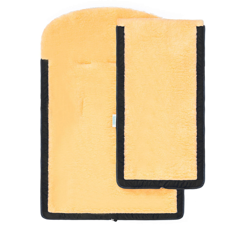 Основа конверта — смесовая овечья шерсть, которая имеет густой и теплый ворс высотой 12 мм. Благодаря природным качествам шерсти внутри конверта обеспечивается оптимальная терморегуляция. Слой синтепона создает дополнительную мягкую прослойку, не утяжеляя изделие (вес конверта всего 0,65кг).