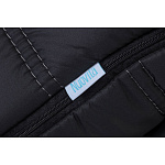 - Фурнитура: две разъемные молнии "спираль", тип 5, в цвет верха, пластиковые зажимы, цветные шнуры-утяжки (по верхнему периметру), вшивные жакардовые этикетки с логотипом, составник.