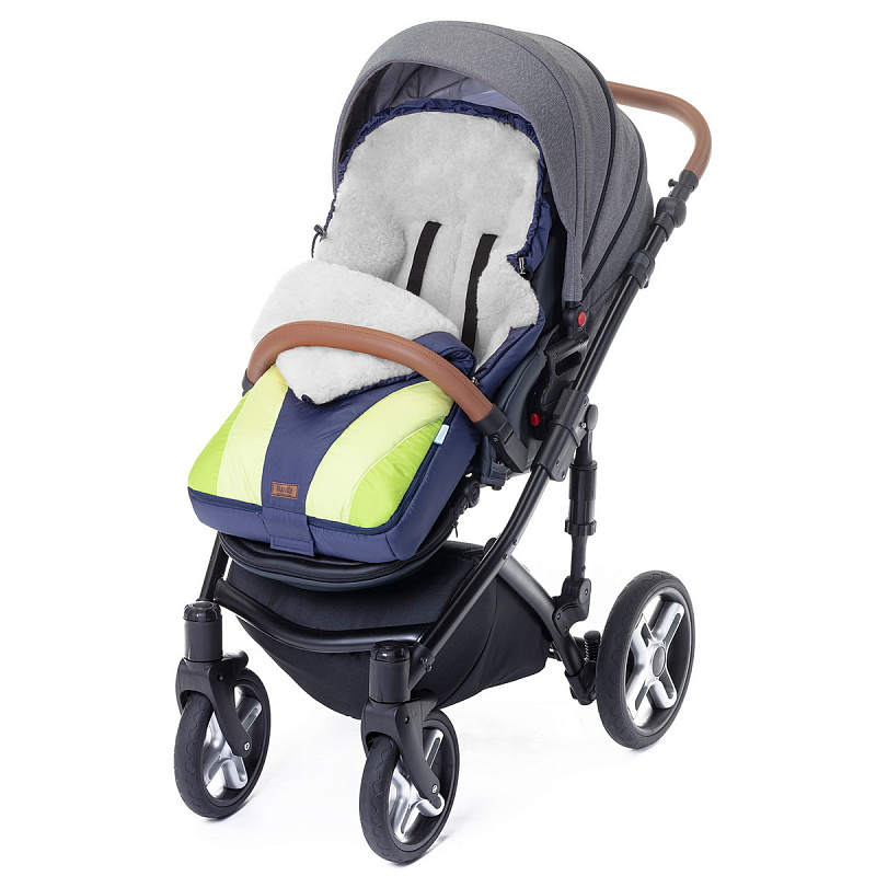 Внутренняя часть конверта выполнена из смесовой овечьей шерсти и имеет мягкий объемный ворс высотой 12 мм. Шерсть является природным терморегулятором, поддерживает оптимальный температурный баланс и способствует спокойному здоровому сну ребенка. Слой синтепона создает воздушную прослойку, не утяжеляя изделие, вес которого составляет всего 650 грамм.