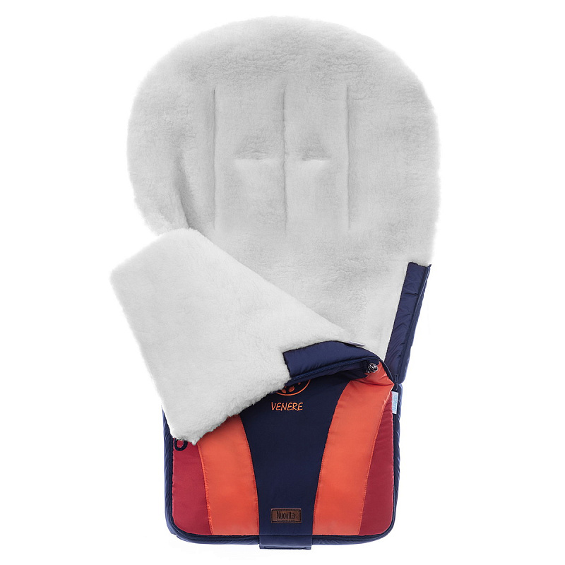 Внутренняя часть конверта выполнена из смесовой овечьей шерсти и имеет мягкий объемный ворс высотой 12 мм. Шерсть является природным терморегулятором, поддерживает оптимальный температурный баланс и способствует спокойному здоровому сну ребенка. Слой синтепона создает воздушную прослойку, не утяжеляя изделие, вес которого составляет всего 650 грамм.