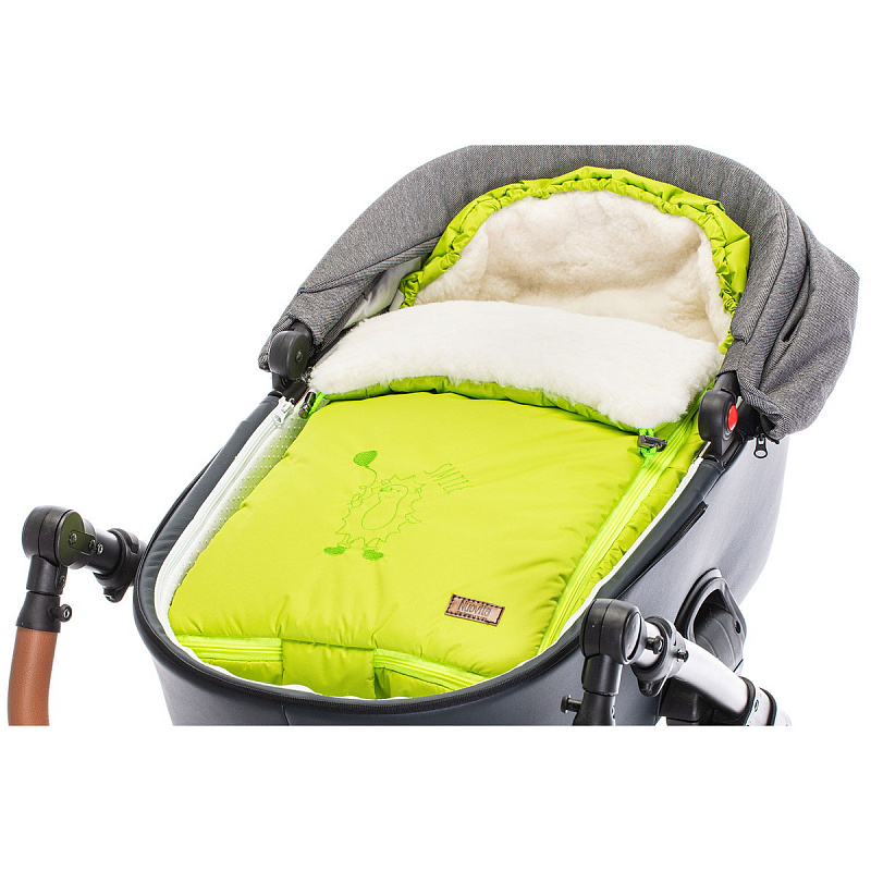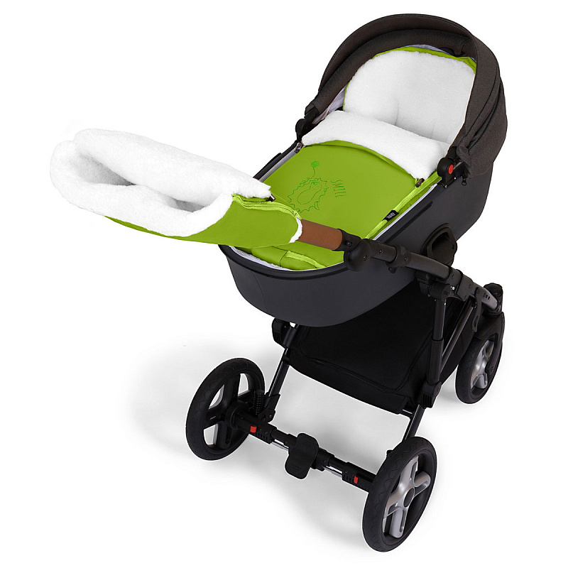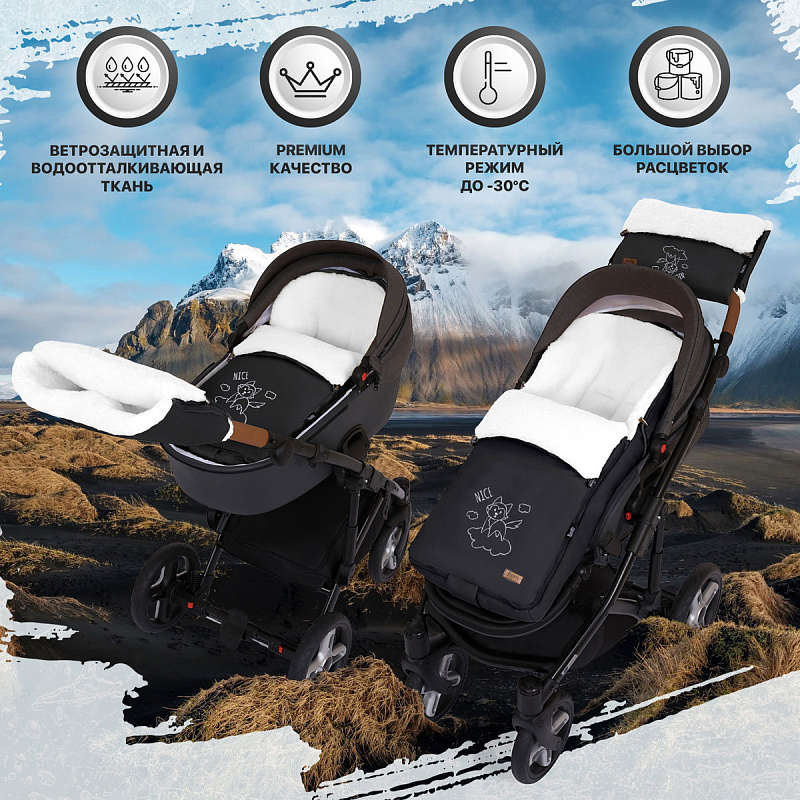 Наиболее удачным является сочетание конверта с меховой муфтой NUOVITA ISLANDA из одноименной коллекции.