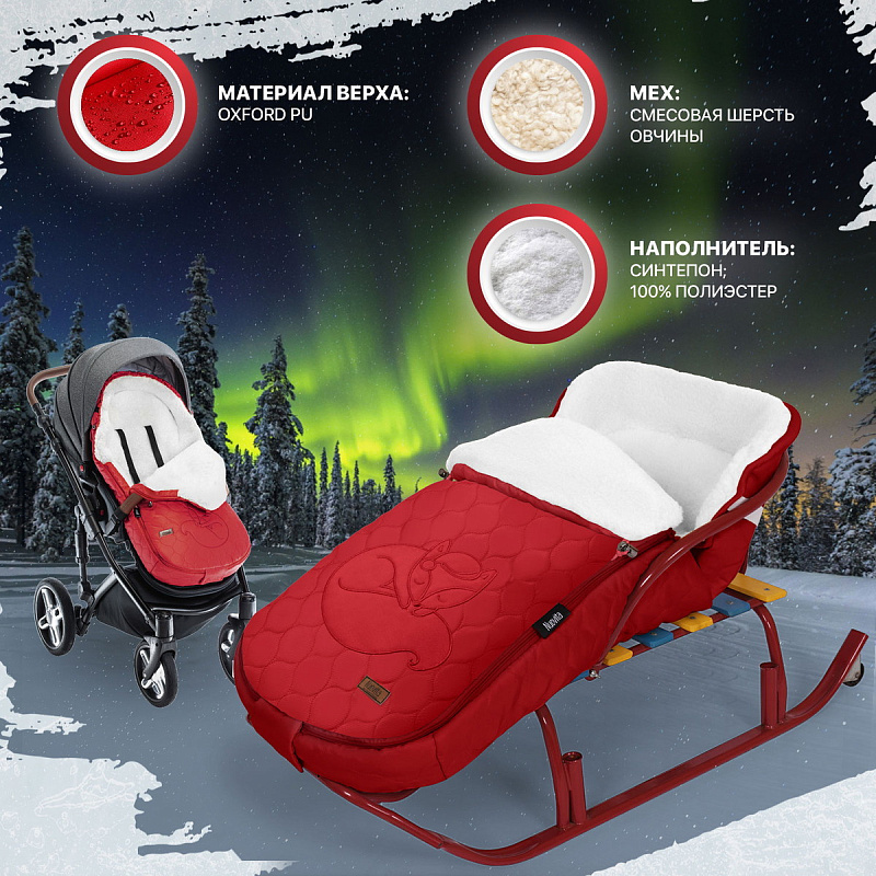 Внутренняя часть конверта сделана из смесовой овечьей шерсти, которая имеет высокий пушистый ворс и отлично сохраняет тепло в самые холодные дни (максимально рекомендованная температура — -30 градусов). Шерсть создает внутри конверта комфортный микроклимат, что способствует здоровому сну ребенка.