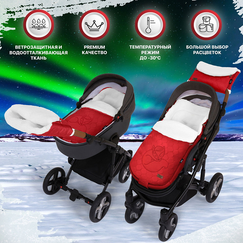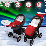 Благодаря широкой резинке и накидному клапану конверт можно закрепить на спинке сиденья прогулочной коляски. Чтобы ребенка на время прогулки можно было пристегнуть пятиточечными ремнями безопасности, в верхней части конверта сделаны прорези. Шнур-утяжка дает возможность заузить верх изделия, создав эффект капюшона, который закроет голову малыша. Наиболее удачным является сочетание конверта с меховой муфтой NUOVITA POLARE из одноименной коллекции.
